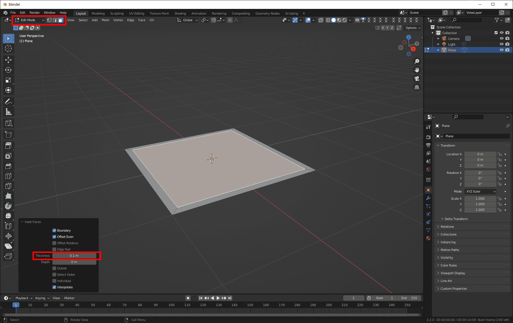왼쪽하단의 Inset Faces 설정창에서 수치로도 설정할 수 있는데요.