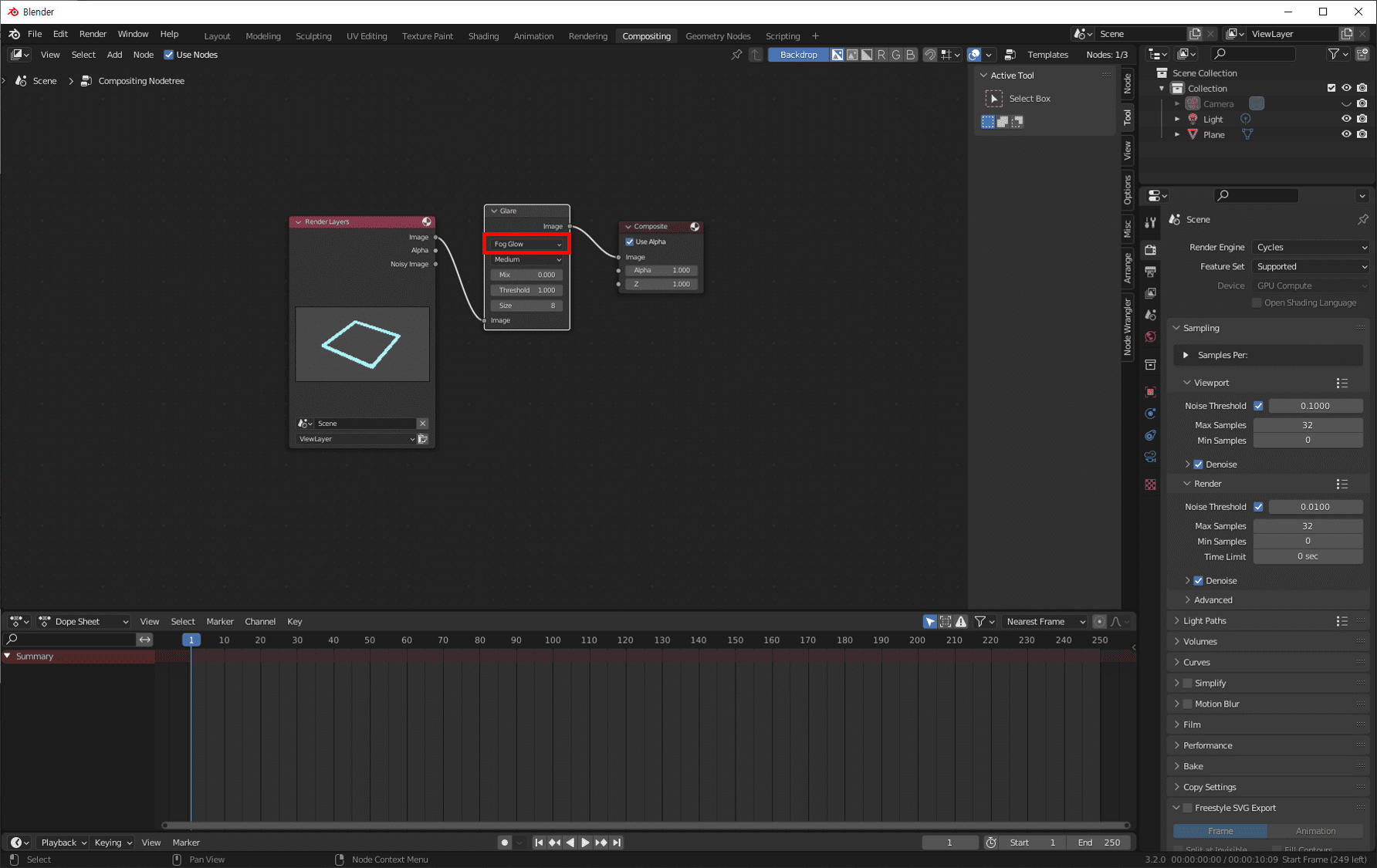 Glare 노드의 설정을 Fog Glow로 설정합니다.