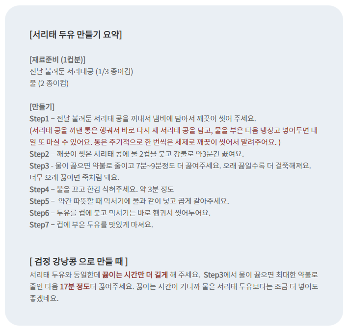 서리태 두유 만들기 루틴