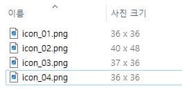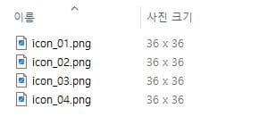 사이즈와 좌표가 수정된 아이콘들을 다시 익스포트해보면 사이즈가 균일하게 잘 익스포트 된 것을 확인할 수 있습니다.